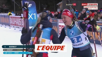 Après s'être imposée dans le relais hommes la veille, la Norvège a fini première du relais (4x6 km) femmes de la Coupe du monde à Ruhpolding (Allemagne) samedi. La France, en tête à mi-course, finit sixième.