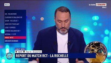 La rencontre de clôture de la 3e journée du Top 14 entre Toulon et La Rochelle, initialement programmée ce dimanche soir (21h05), a été reportée en raison d'un temps exécrable, marqué par des éclairs et une pluie diluvienne.