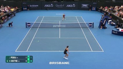 Après avoir éliminé Amanda Anisimova et Mirra Andreeva, Marta Kostyuk s’est offert le scalp d’une autre joueuse du top 10 en délivrant une masterclass ce samedi à Brisbane face à l’Américaine Jessica Pegula, numéro 6 mondiale (6-0, 6-3 en moins d’une heure). La jeune ukrainienne jouera sa première finale depuis 2024, face à Aryna Sabalenka.