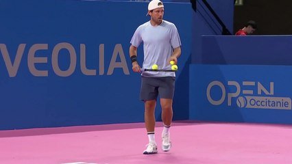 Duel entre Lucas Pouille et Mattia Bellucci au 1er tour de l'Open d'Occitanie à Montpellier.