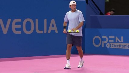 Duel entre Lucas Pouille et Mattia Bellucci au 1er tour de l'Open d'Occitanie à Montpellier.