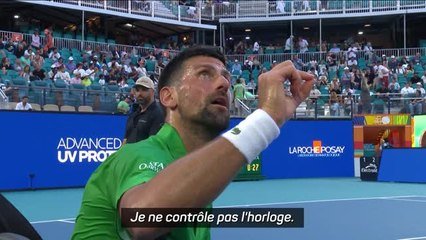 Djokovic a échangé avec Fergus Murphy à propos d'une violation de temps au service lors de sa victoire sur l'Italien. Dans le premier set, Djokovic a reçu un avertissement après avoir dépassé le chronomètre d'une seconde.