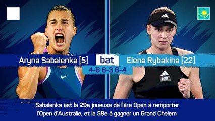Fin du suspense dans le tableau féminin puisqu'Aryna Sabalenka a remporté l'Open d'Australie 2023 en battant Elena Rybakina en finale, ce samedi. Une grande première en Grand Chelem pour la numéro 5 mondial.