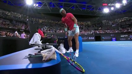 Un passage par les toilettes un peu trop long a coûté un warning à Rafael Nadal, entre la première et la deuxième manche de son match face à Jason Kubler, ce jeudi à Brisbane. Une situation qui a fait sourire l'Espagnol, et l'arbitre. Voici cette séquence "légère" en vidéo. Le tournoi de reprise du Majorquin, après quasiment un an d'absence, est à suivre toute la semaine sur Eurosport. Les chaines Eurosport sont disponibles au sein des offres Canal+, Prime Video, Bouygues Telecom et Free avec TV by Canal