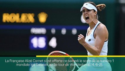 La Française Alizé Cornet s’est qualifiée ce samedi pour les huitièmes de finale de Wimbledon en écartant la n°1 mondiale Iga Swiatek, qui restait sur une série incroyable de 37 victoires consécutives (6-4, 6-2).